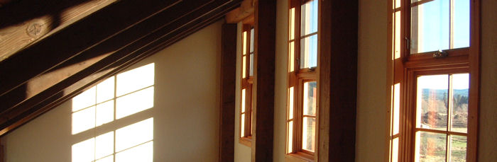 I noticed right away in Oregon that even when it rained it was quite light out. But indoors, in homes with low ceilings and deep overhangs it was dark and gloomy. In Auerhaus four, 6-foot tall clerestory windows primarily meant for passive solar heating, have perhaps had the greatest impact on illuminating the interior. This greatly reduces electricity use, and gives the commodious living area an uplifting quality even in winter. More entrancing still is to see shafts of moonlight light up objects or to see stars twinkling through the windows.