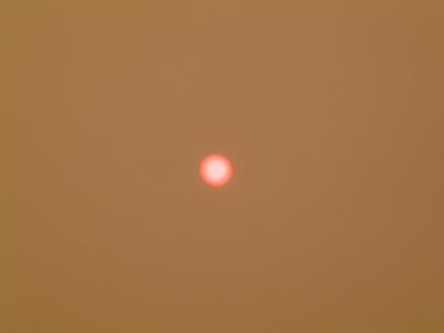The next day this is what the sun looked like at noon on an otherwise clear day. Though we never were evacuated, the pall of smoke, and inability to go anywhere or do anything, drove us to abandon ship and head for Vancouver a few days earlier than planned.